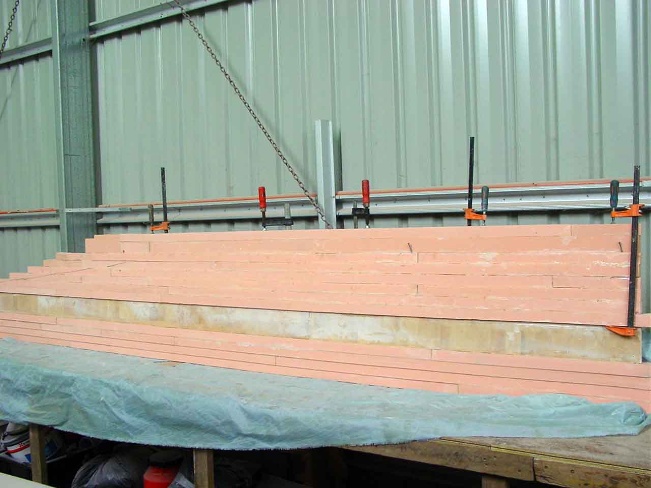 What I did get done was to glue the last of the foam to the second beam. I still have a little bit of a bow in the second dagger but I noticed the board is still flexible so I will just have to wait until I shape it. I wont be able to push the bow down as it will just spring back after shaping and still be a problem, but I may just have enough spare on each side for it to be shaped out with the router.