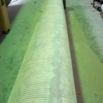 So after about an hour of solid sanding (solid means 2 minutes on 2 minutes off on a warm day) I had the beads down to what I felt was fair. Until I decided to have a look using the conduit to look for highs or lows. I didn’t find any highs but I found a couple of lows. One in fact surprised me for 2 reasons, first I could not see it and second that I created it by sanding too far. This is part of the reason that 2 different layers of bog will go on, to fair out better with each layer until eventually the surface is fair enough to paint with gloss and look great.