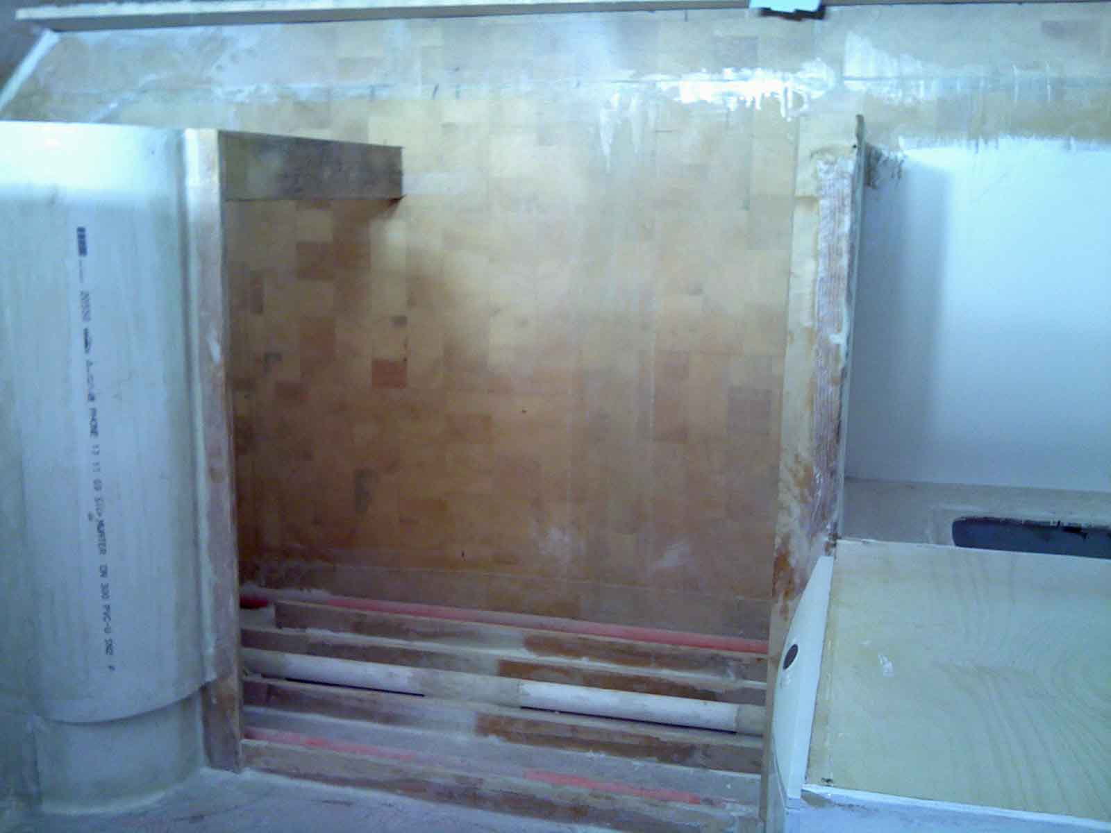 In order to fit the fridge I needed to build a frame into the space that will house the front flange that is built into the fridge that creates the inbuilt flush finish and to build a floor into the cavity so that the weight of the fridge is not sitting on the 3 wiring conduits I glassed into the space when I thought I was making my own fridge over them. There is room under the standard bench top height for a floor, so I ran some 25mm ply rails onto which I can screw a plywood floor (or I could glue it). I may also put some foam under the floor to stop hot air from rising up into the cavity and making the fridge work harder (when building my own fridge it was always the plan to have the most insulation foam on the bottom as this is where it is most needed). There is also plenty of room around the 2 sides to also add a generous layer of foam to stop heat getting in from the sides. The only area that is tight and has no room for additional insulation is the back bulkhead. Hopefully heat does not enter the cavity from the bedroom or visa versa and the fridge does not send heat through the bulkhead to the bedroom.