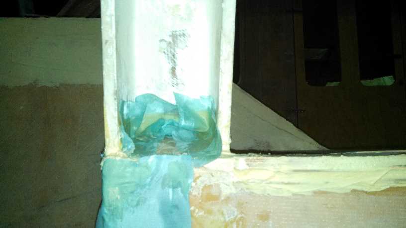 I also glassed in a half stanchion half way down the steps into the hull side and protruding about a third the height of a full size stanchion. This is designed to be the end of the life lines or a way to angle the lines down and then they may terminate at a pad eye. I will decide that once I have the stanchions all in, or at least the last full size stanchion is in. That wont happen until after fairing, as the stanchions get in the way when fairing.