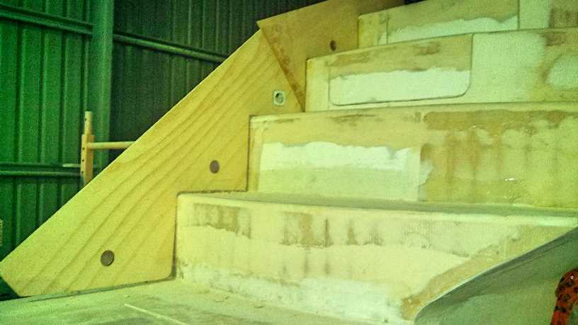 With all of that decided, I glued some blocks to the steps to act as anchor points (and dams to stop glue pushing through as I squeezed it in and coved the front. And glued and glassed to them.