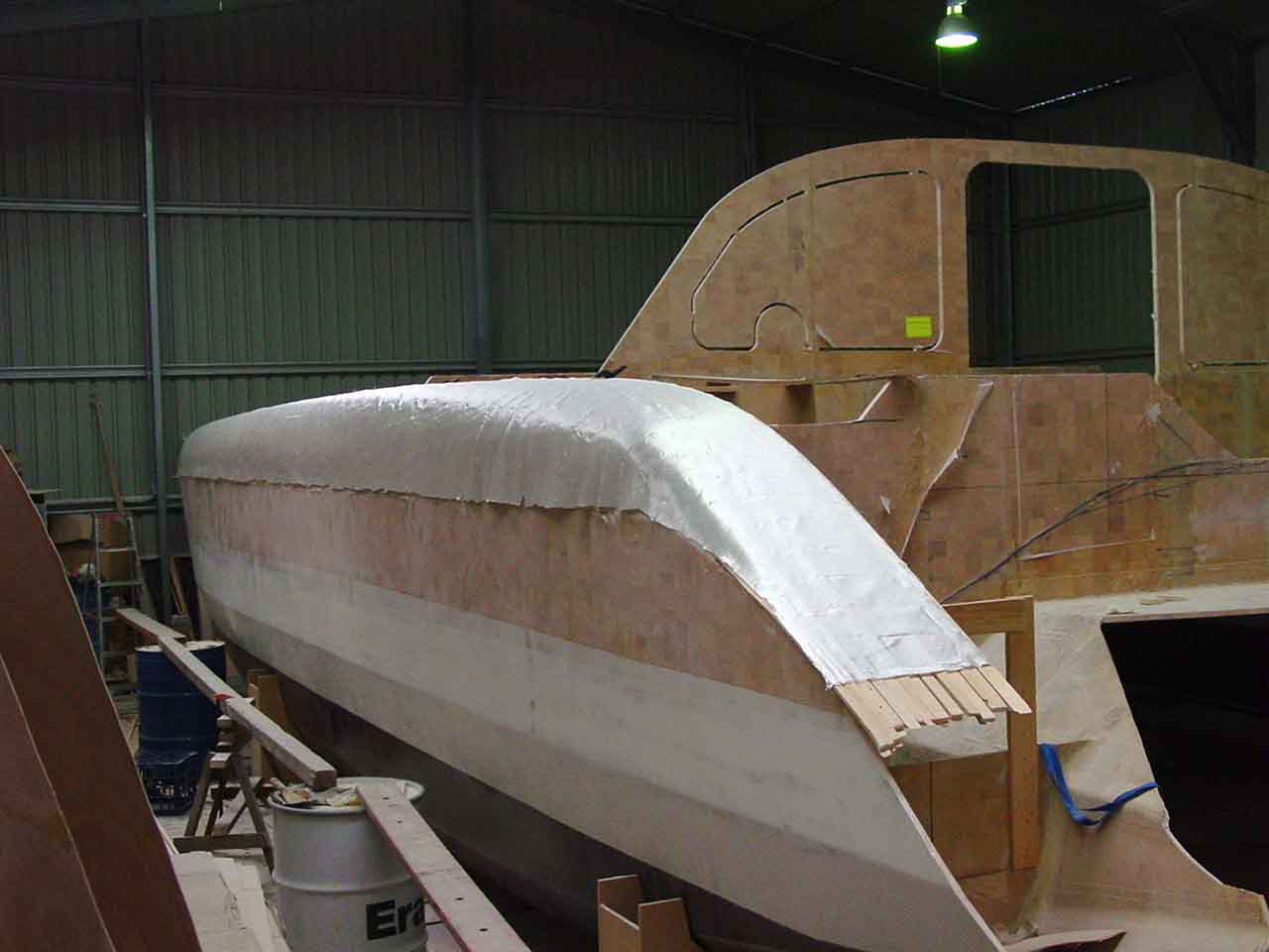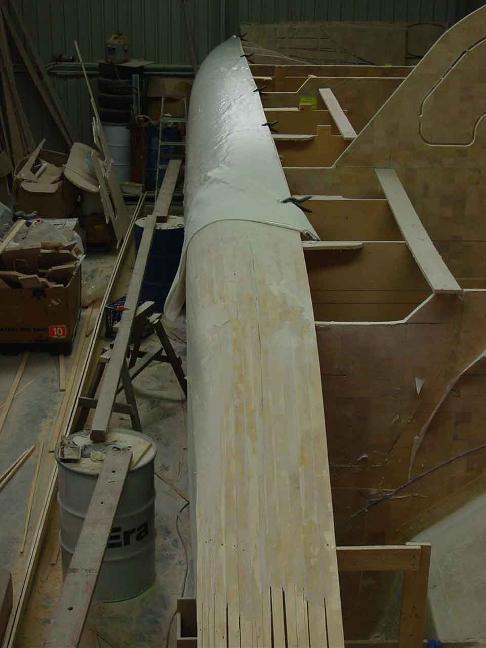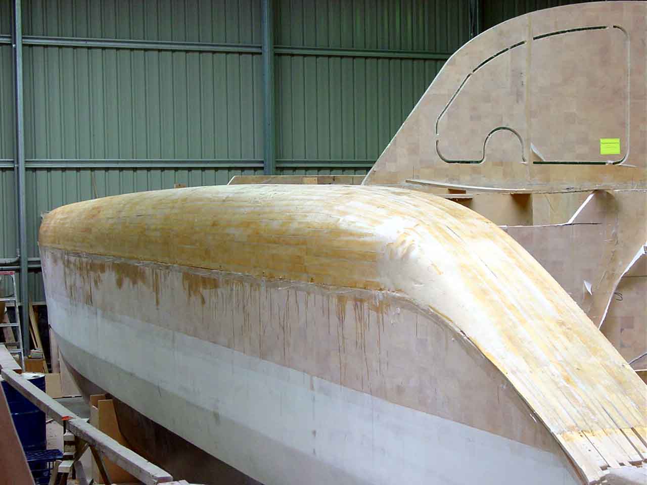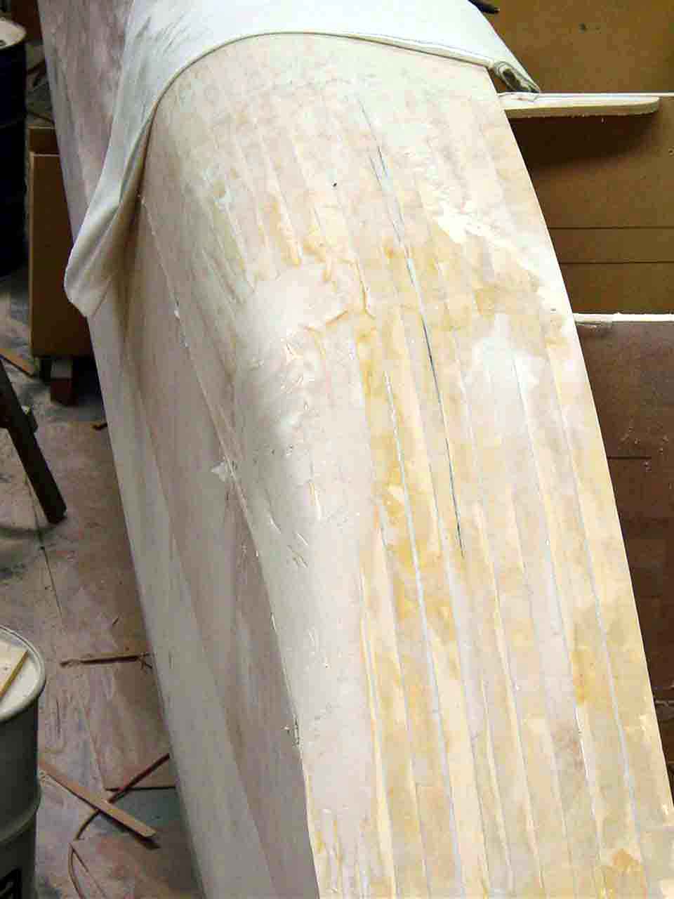 Bogging, Glassing, Side decks, Strip planking