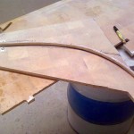 Today I did a little more work on the davits, clamping all of the sides together and sanding out the jigsaw cutting irregularities (each one was a little bit different shape). As they are the side profile of the davits they all need to be the same shape. I also cut more of the raised duckboard internal walls that will form not only the shape of the duckboard, that is the height (500mm off the deck) and the depth according to the curve of the original duckboard and the consistent angle that I have set the duckboard back panel to.