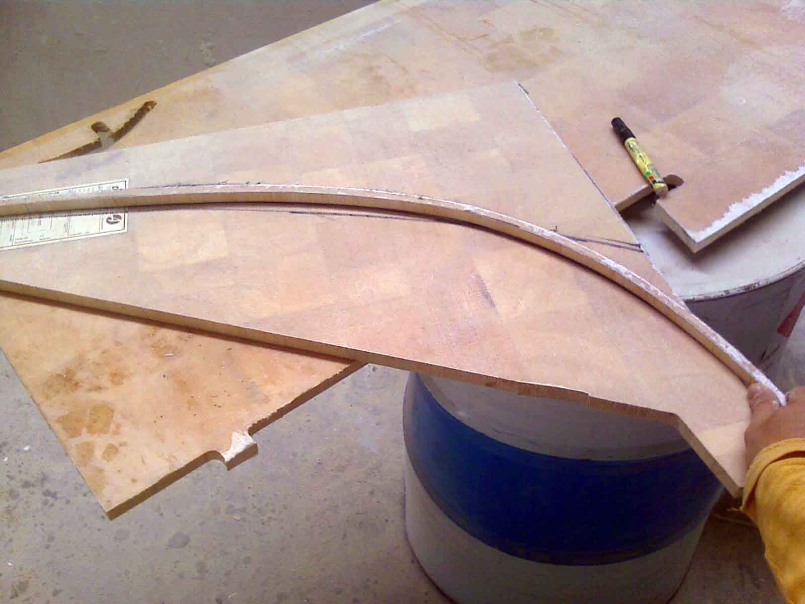 I also started to mark out the rear step risers. I will have an outboard under each sides steps. I need about 800mm back from the rear bulkhead and about 1400mm from the keel at about the point where the outboard skeg would be. So knowing what I needed to have, I marked that out and worked back from there. I want to try to keep the risers to 250mm to 300mm and to at least get the same depth or more per step. If you don’t get 300mm minimum per step you tend to walk up them on your toes rather than plant your whole foot, or you crab up them sideways. So with all that in mind I started to mark out the risers. I think I can get the height and depth I need so from here it is a matter of working out the shape of the steps that works.