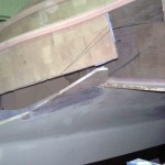 As it was my birthday today I did not get much work done. I did not quite finish bogging the steps yesterday, so I basically just finished that as the bog was still not hard enough to sand yet (the bog takes 2-3 days to fully cure once the temps start to drop in Autumn now). I also spent some time adjusting the next steps in the steps process, excuse the intended pun. The next step down is part of the bottom steps that will be made separate to the top set and form the base onto which the engine room hatch lid will sit, and will also have the kick up rudders cut out of them.